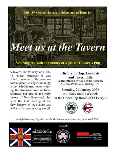 Probably said millions of times in the 18th-century. Join us on 24 January if you are in Saint John, NB. at O'Leary's Irish Pub and hear Professor Bonnie Huskins talk about the importance of taverns to history. For more info: email below.
